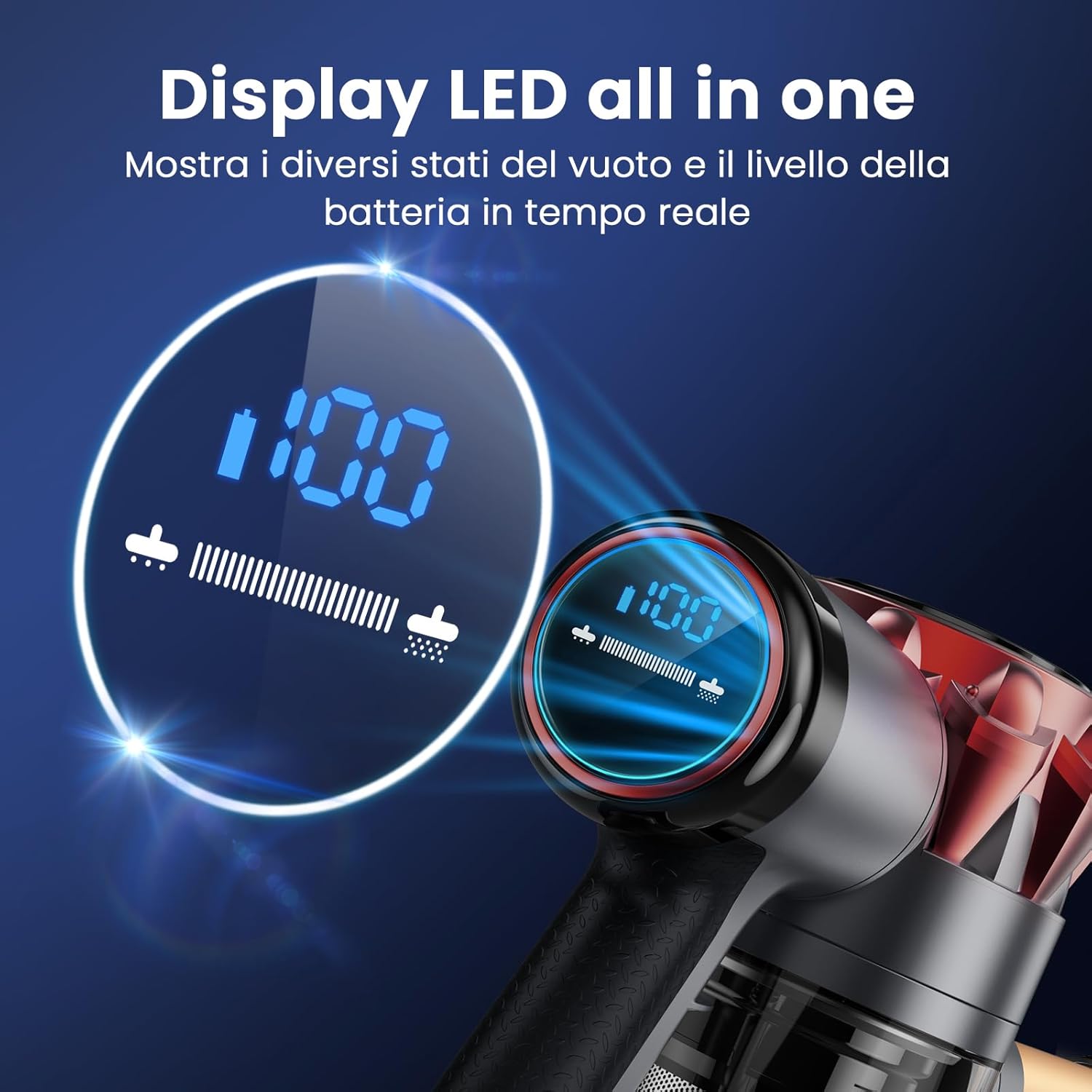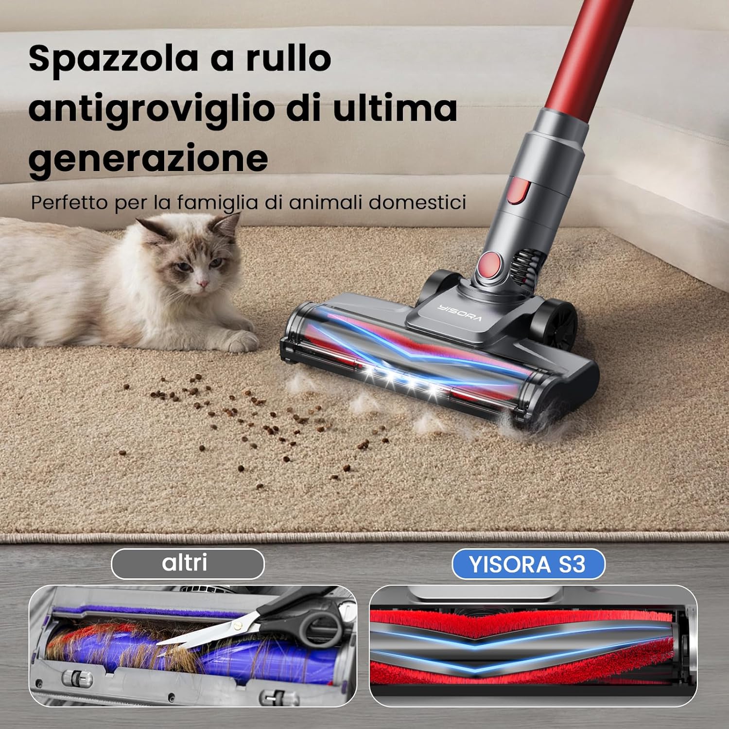 جارو شارژی بیسیم YISORA S3 | قدرت مکش بالا، ضدگرفتگی مو، نمایشگر LED
